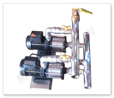 The Pressure Booster System consists of a multistage centrifugal pump suitably assembled with automatic pressure control (Pressure guage, Pressure switch brass NRV and Brass five way connector ) and Pressure tank. The pressure Booster system is suitable where the main supply lines have low pressure and wherever boosting is required and wherever pressure need to be maintained. The pump will automatically switch ON/OFF to maintain the output pressure.